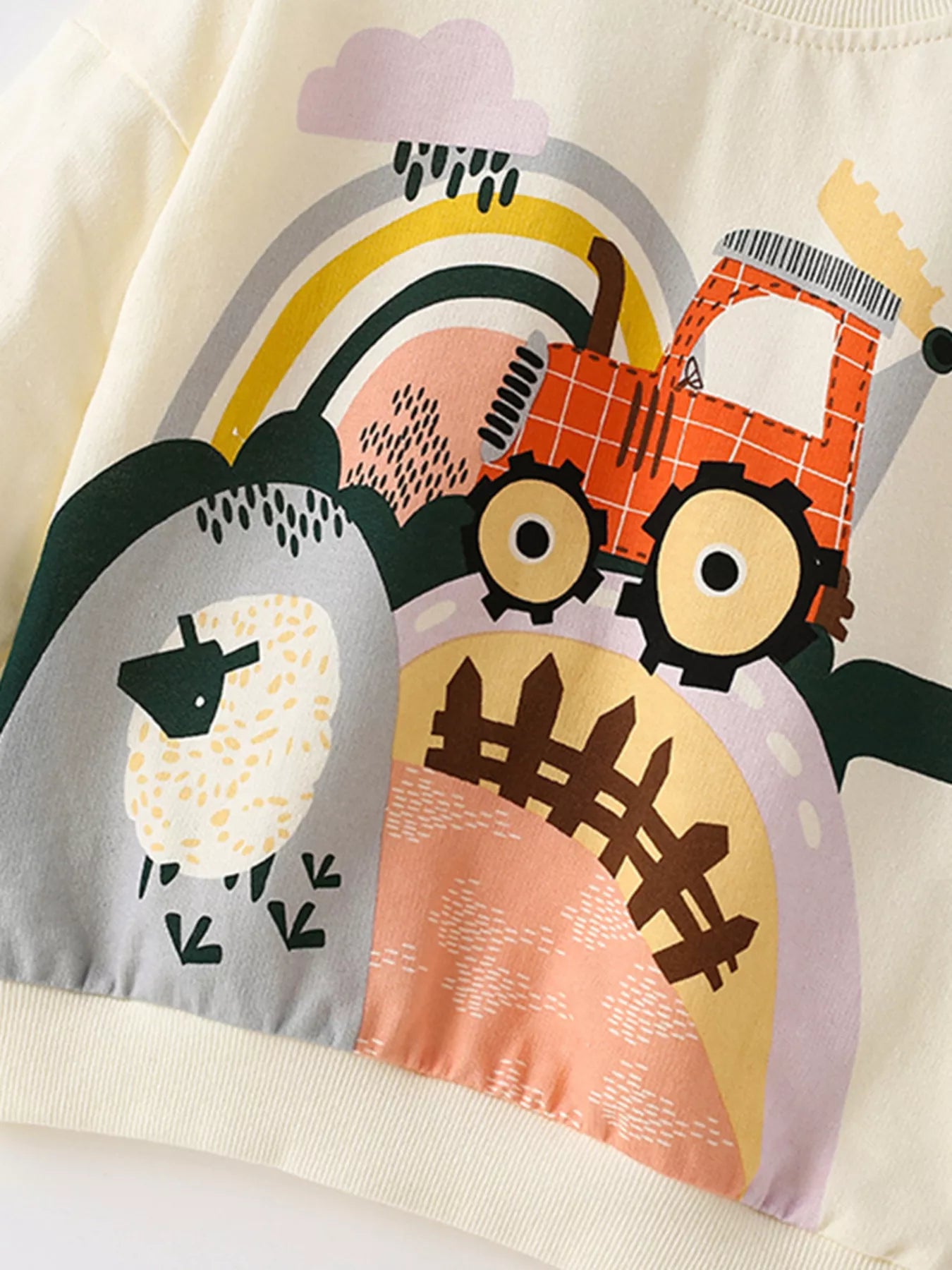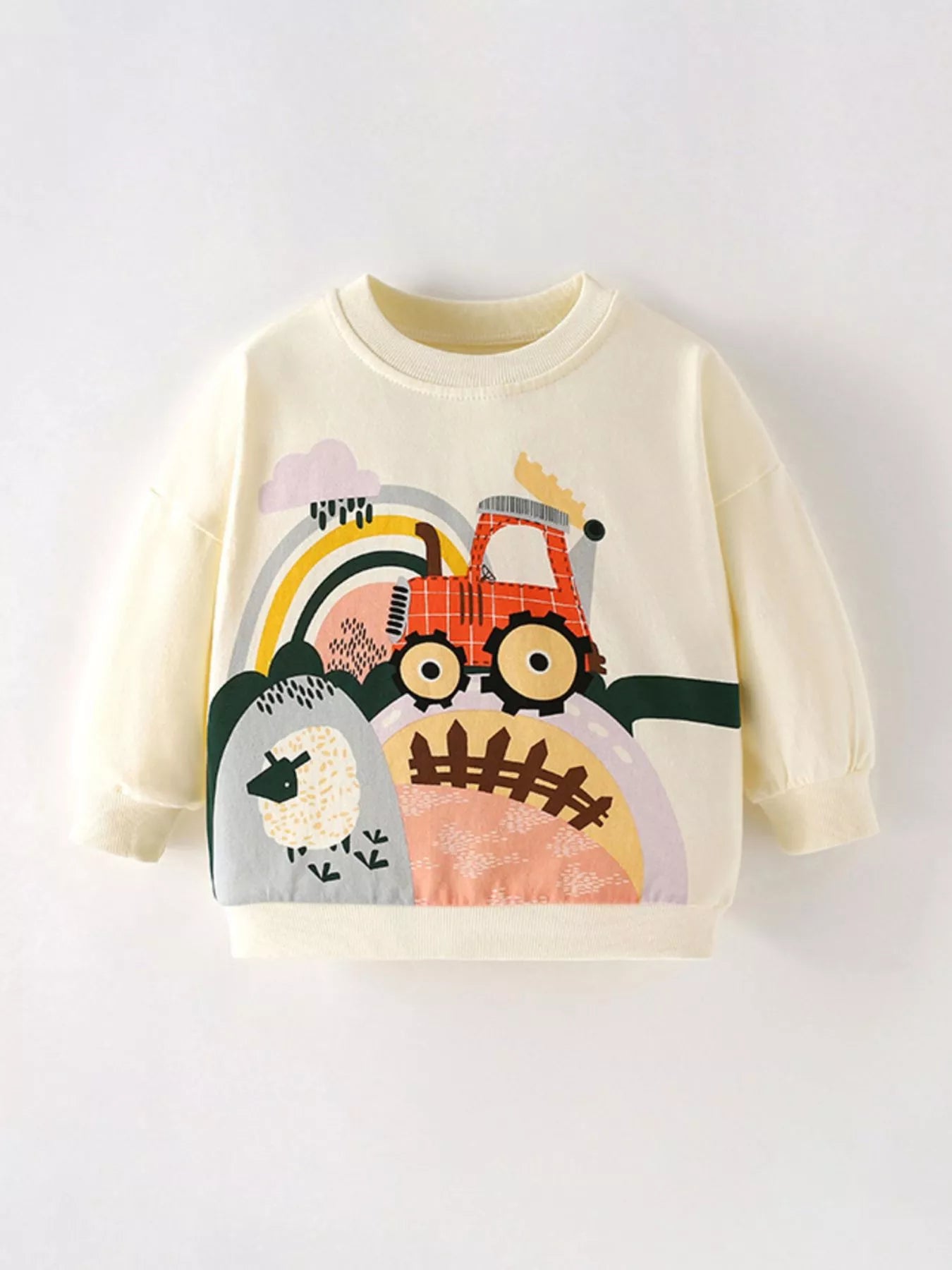 Children's Cartoon Tractor Crew Neck Sweatshirt