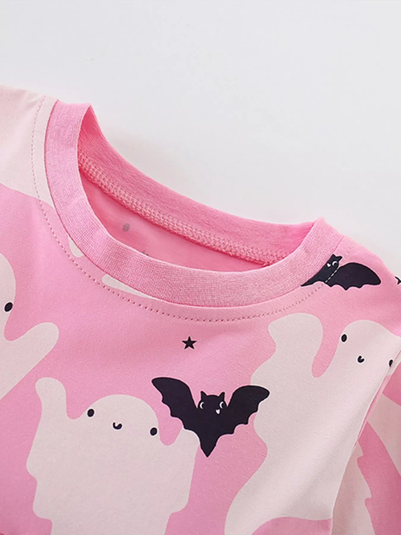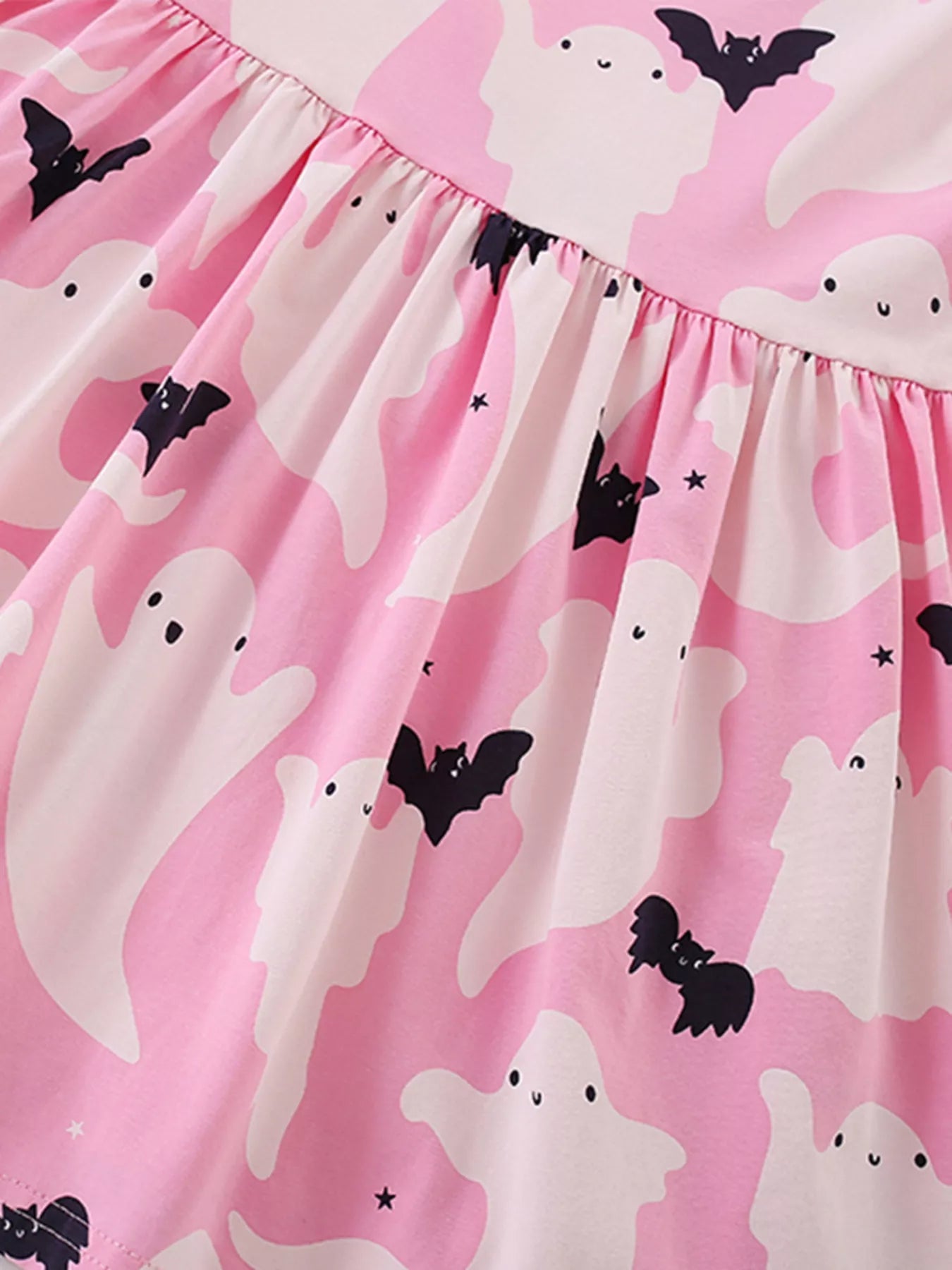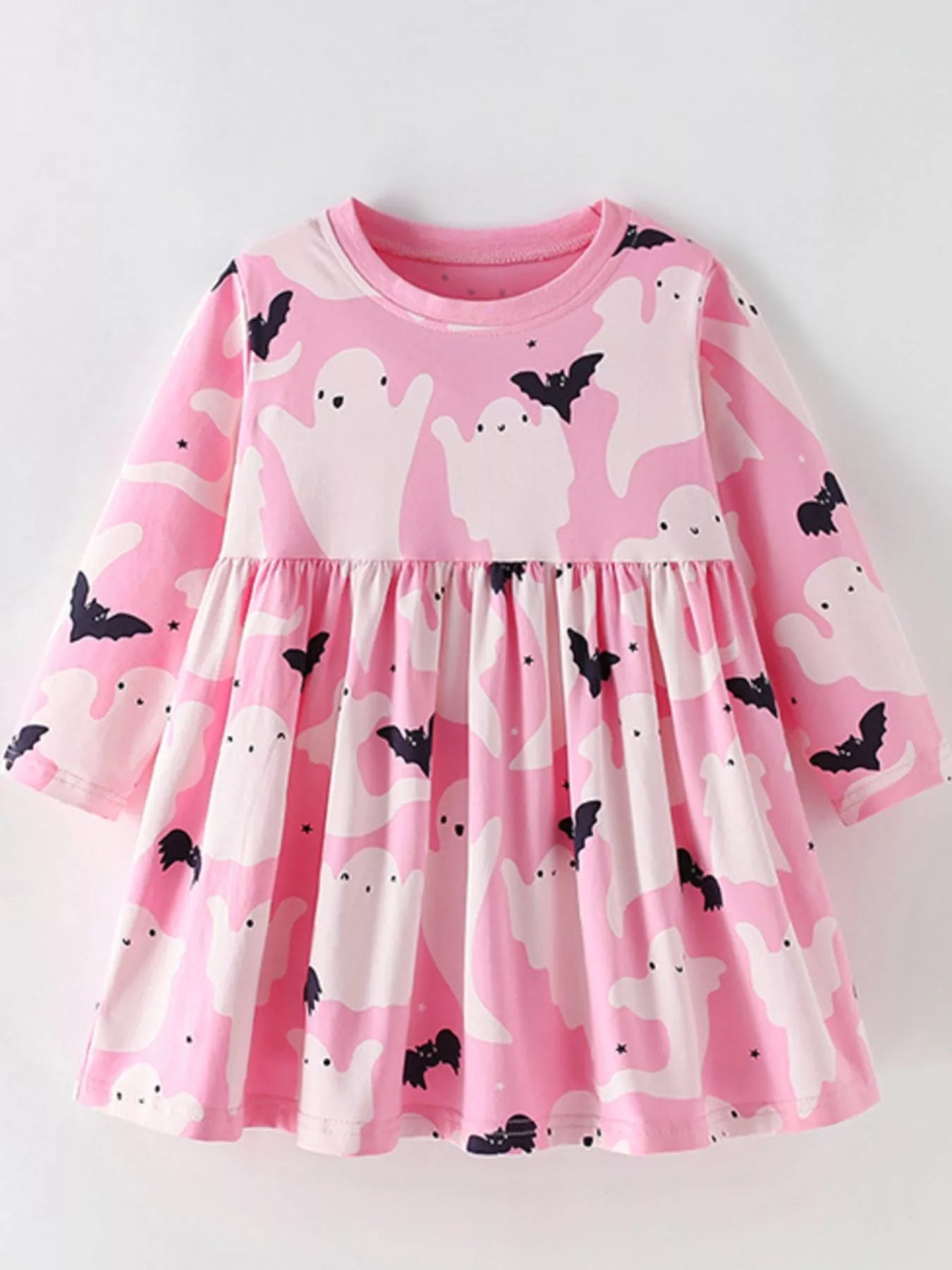Children's Halloween Ghost & Bat Print Long Sleeve Dress