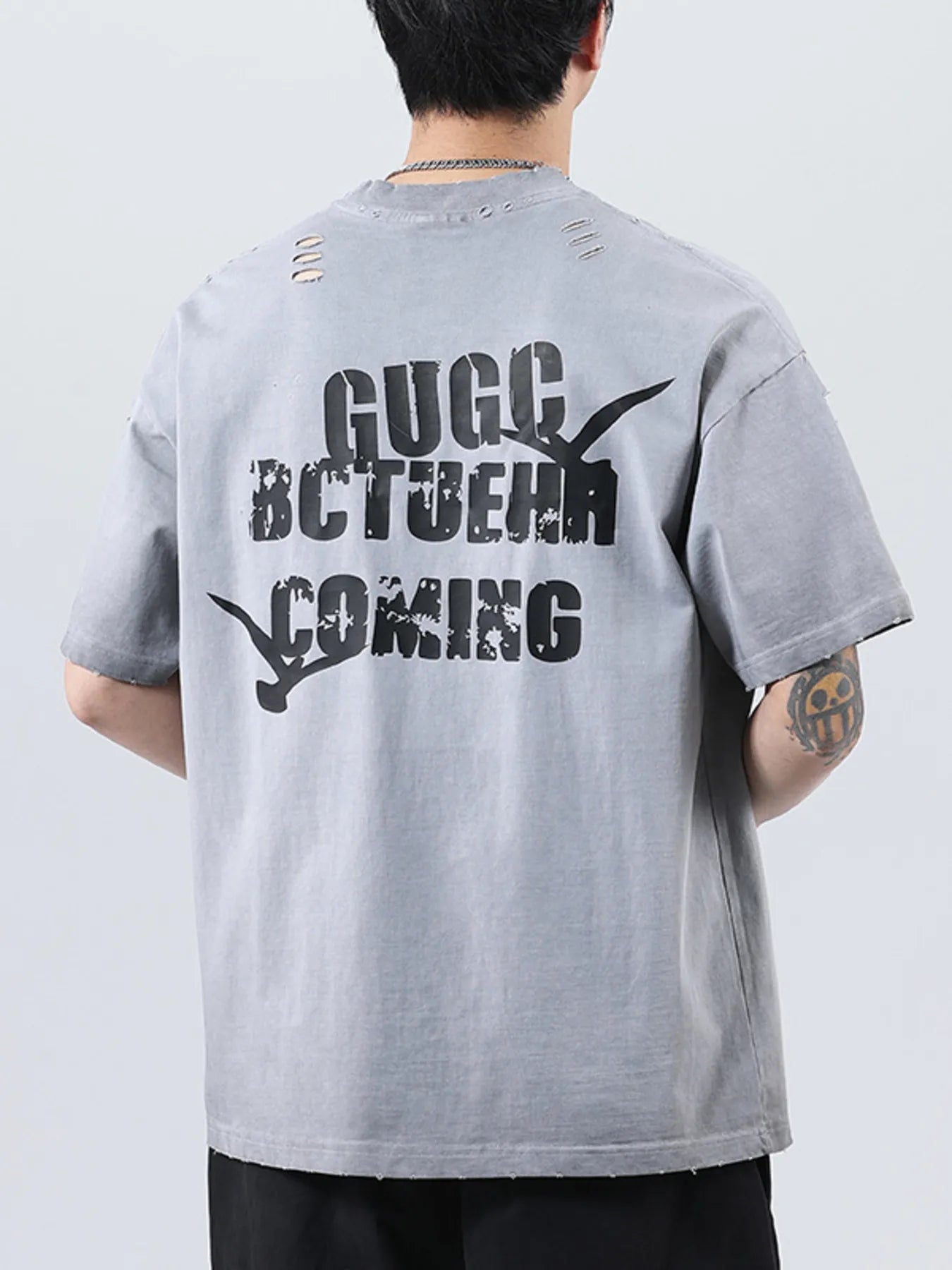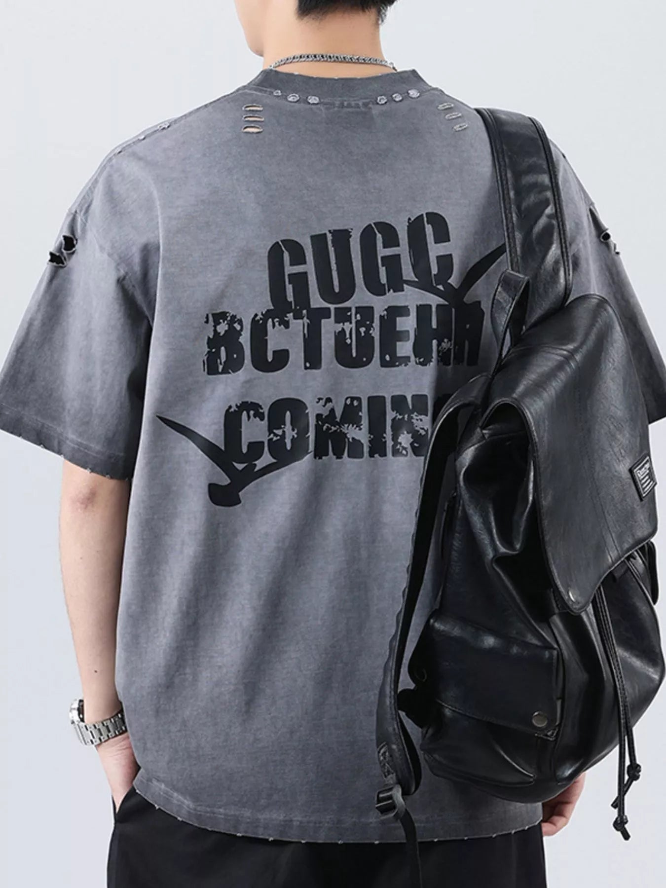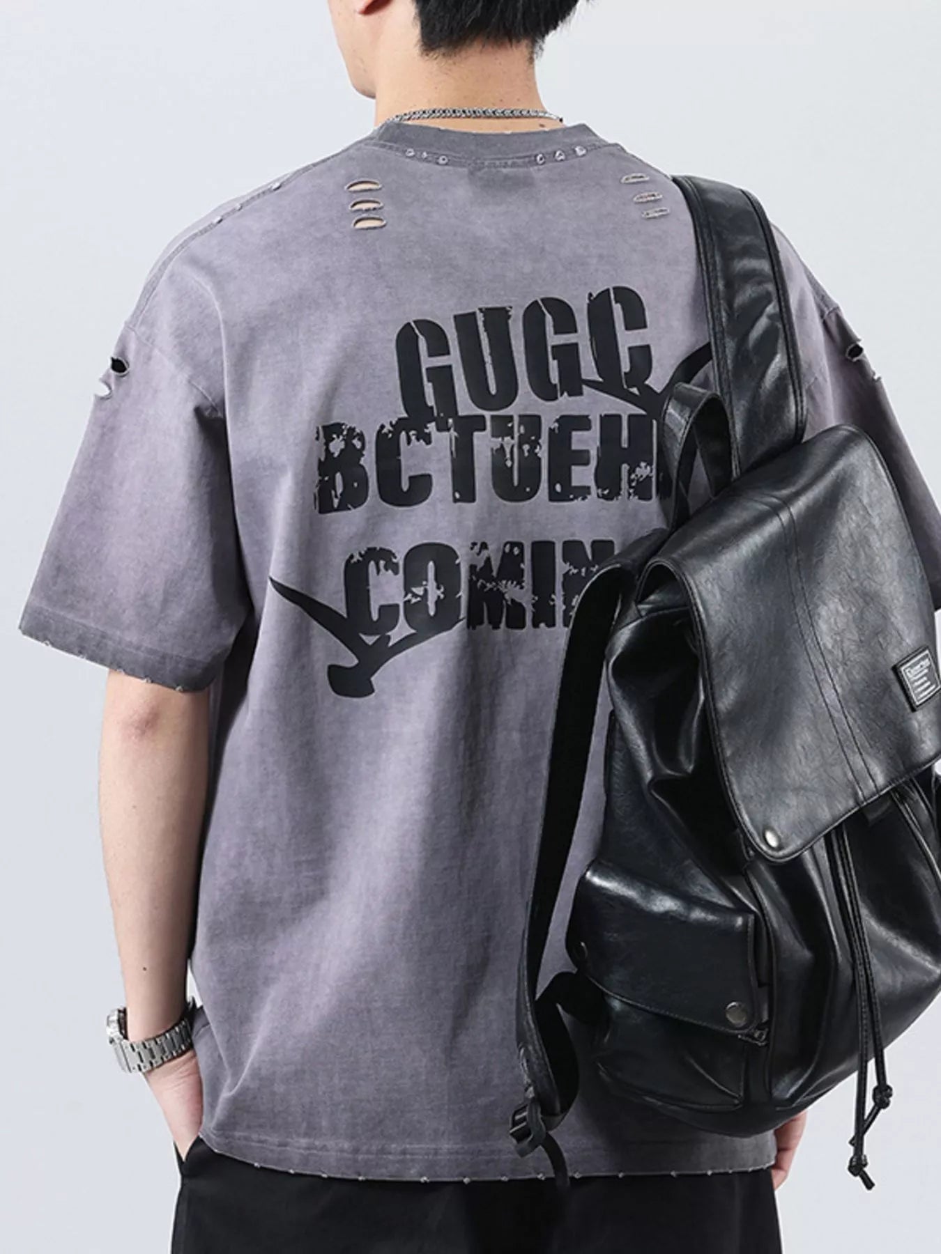 This isn’t your average t-shirt. The carefully crafted distressed details and faded vintage wash give it a unique, lived-in character. It’s the perfect top for creating a cool, laid-back aesthetic that stands out.