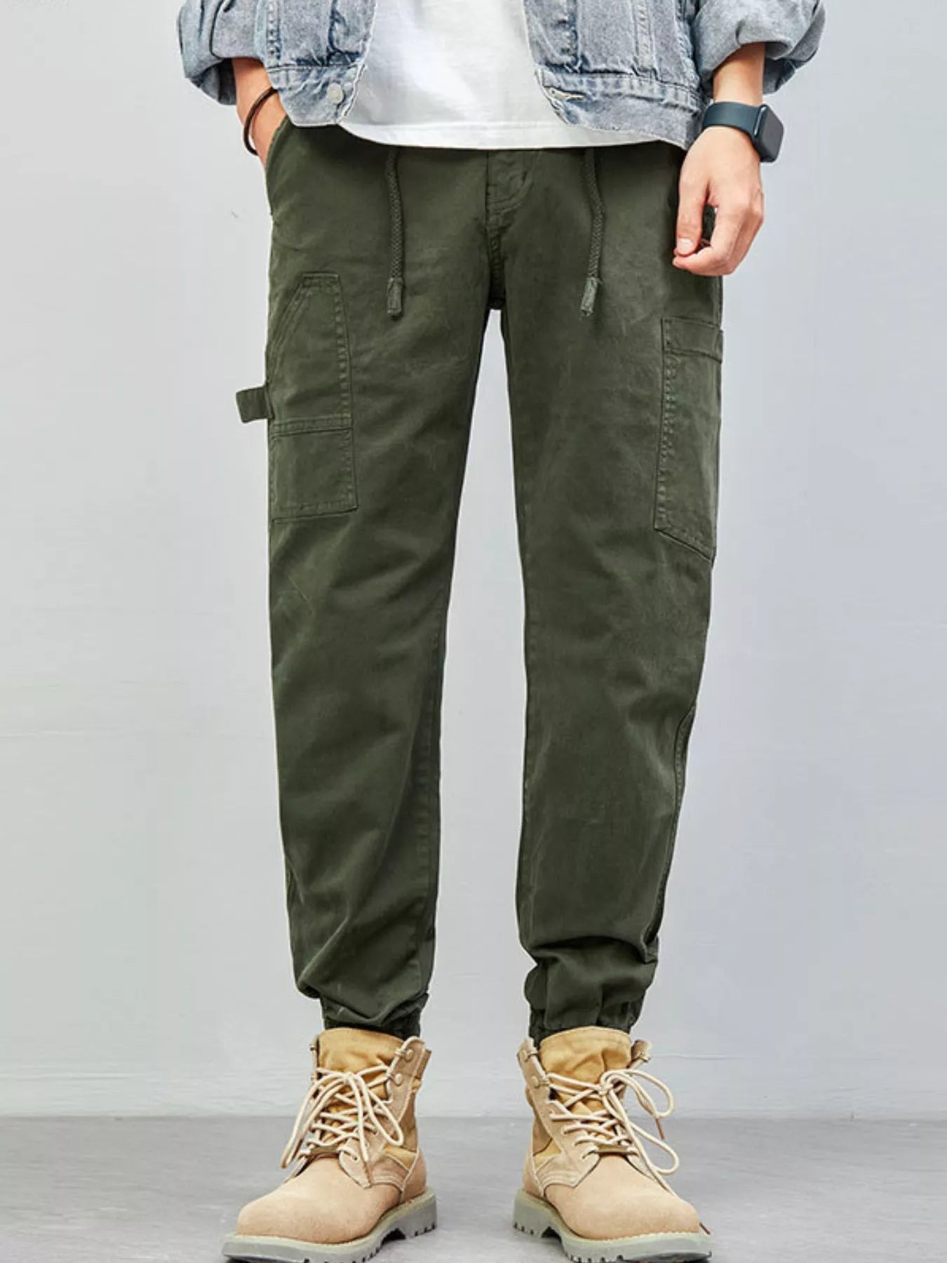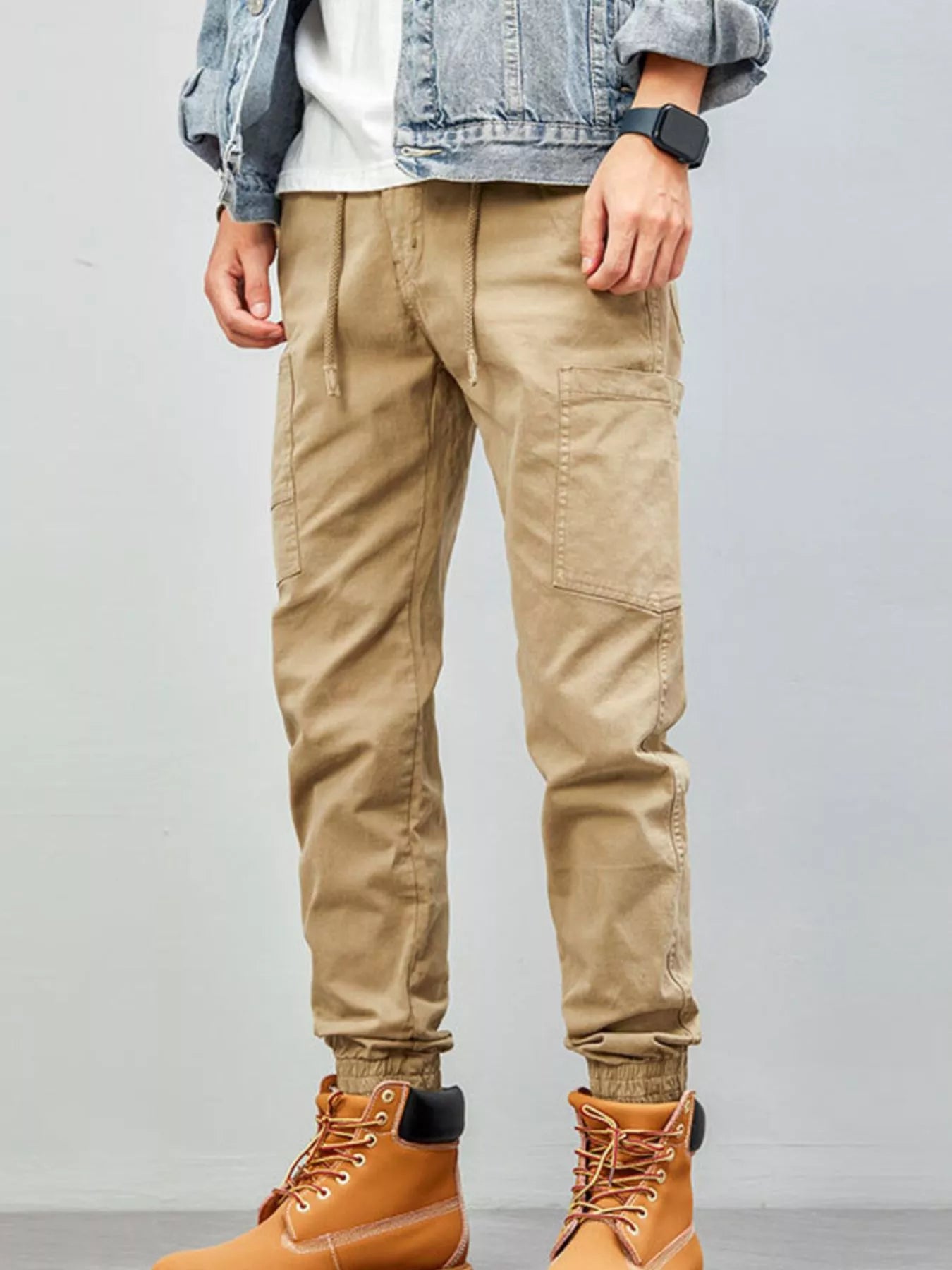 Men's Casual Slim Fit Pants with Drawstring | Stretch Cotton Chino Jogger