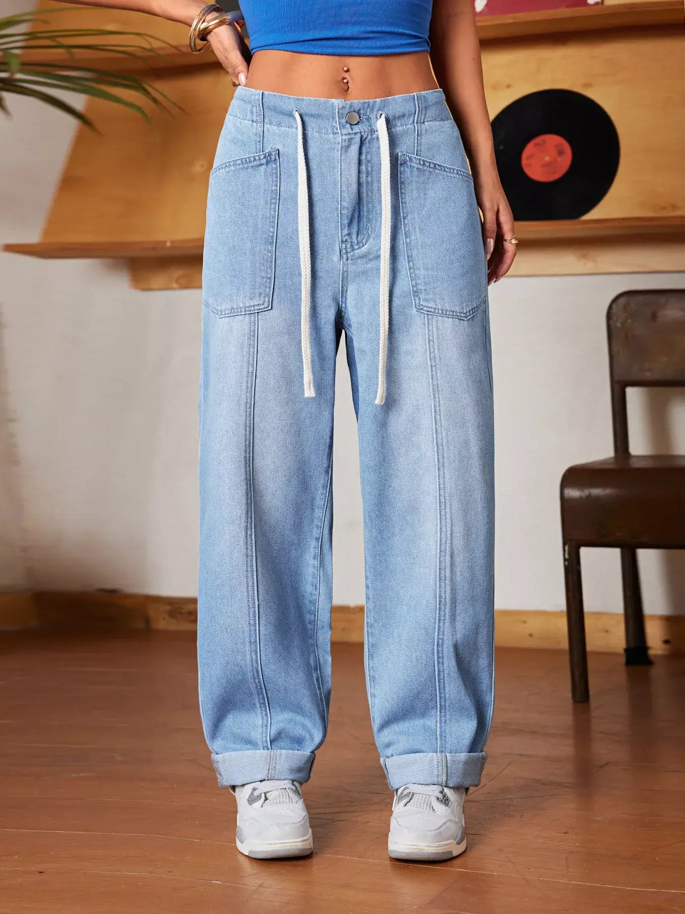 Experience Effortless Style: Women's Drawstring Wide Leg Jeans