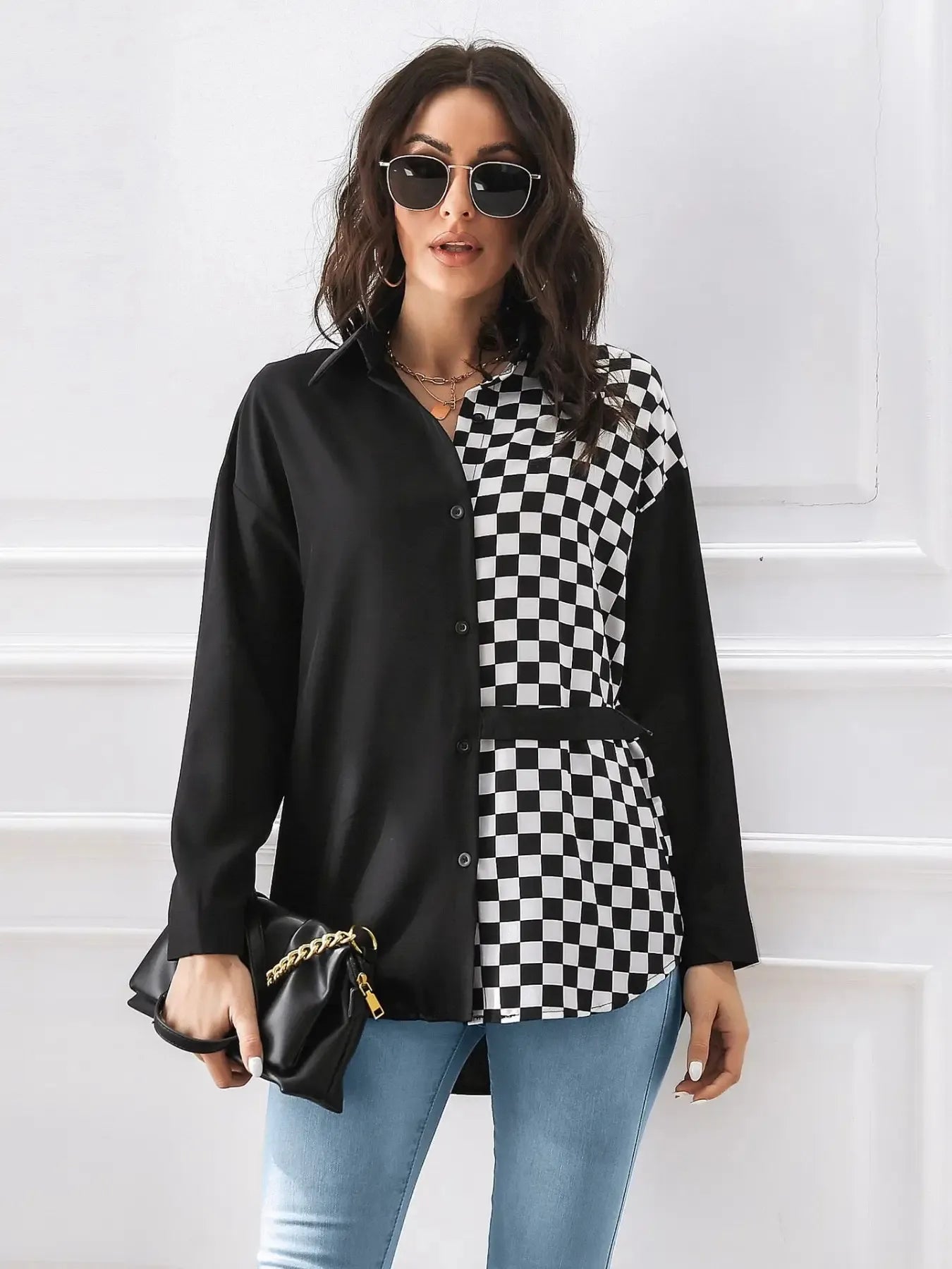 This women’s checkered shirt is a must-have for 2025, offering a flattering fit for all body types. Whether you're dressing up for work or keeping it casual-chic, this long sleeve blouse is your go-to piece.